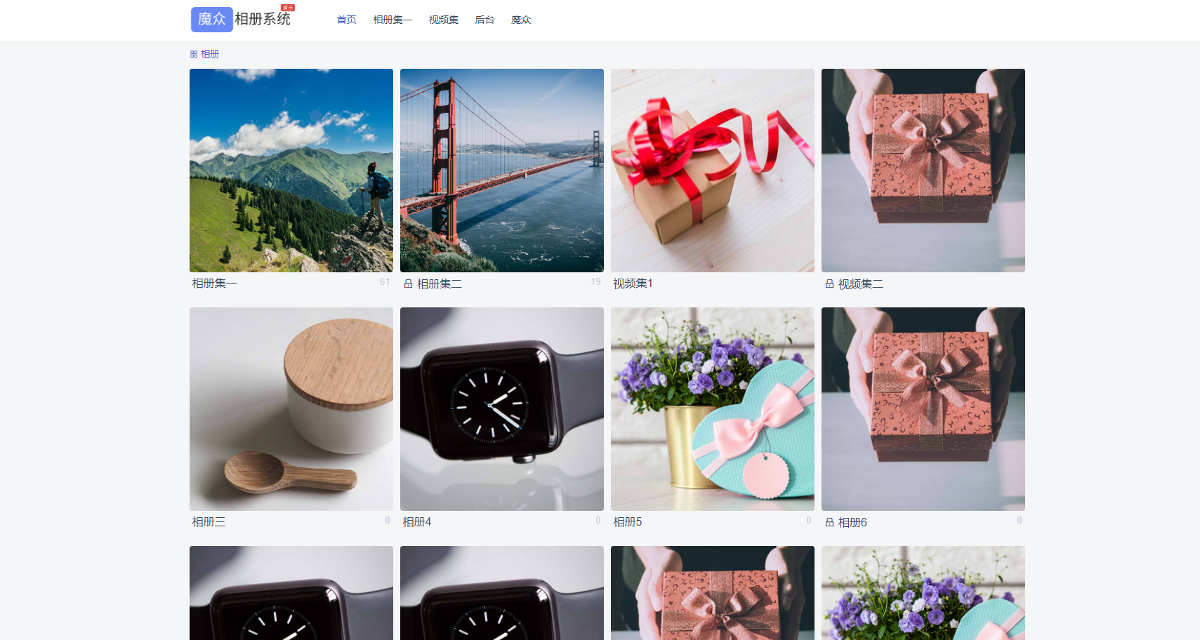 魔众相册系统是一个基于MySQL与PHP开发的相册系统,支持多分类、图片、视频、加密等特性,帮助您更好的搭建个人相册系统。